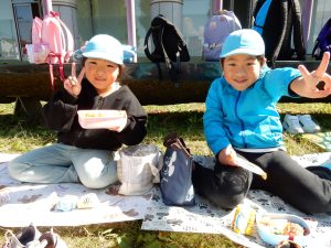 お昼は青空の下、楽しみにしていたお弁当タイム🍱