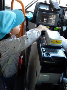バス停までの道のりをルンルンで歩き、ドキドキの乗車!!整理券を取り、自分でお金を払います。